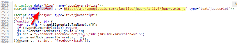 - When found, add defer=’defer’ to that line of code. The image below shows you where exactly it should be inputted.